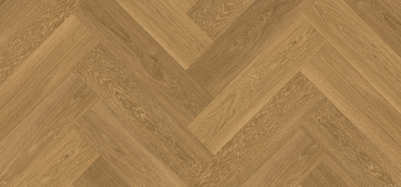 Die Gästesuite wies bereits ein beruhigendes Ambiente mit taktilen Materialien in einer sanften Farbpalette mit Grauund Brauntönen auf, das durch unkonventionelle Akzente wie diese exotische Tapete mit Flamingos belebt wurde. Der zeitgenössische Stil wurde mit Böden in Golden Brushed Oak aus der Van Gogh-Kollektion im Rigid Core-Format verstärkt und modernisiert. Das mit kleinen Planken im Fischgrätmuster verlegte Bodendesign verleiht den Räumen mit seinen warmen, honigfarben Farbtönen und feinen Maserungen ein Gefühl der Durchgängigkeit und einen natürlichen Charakter.