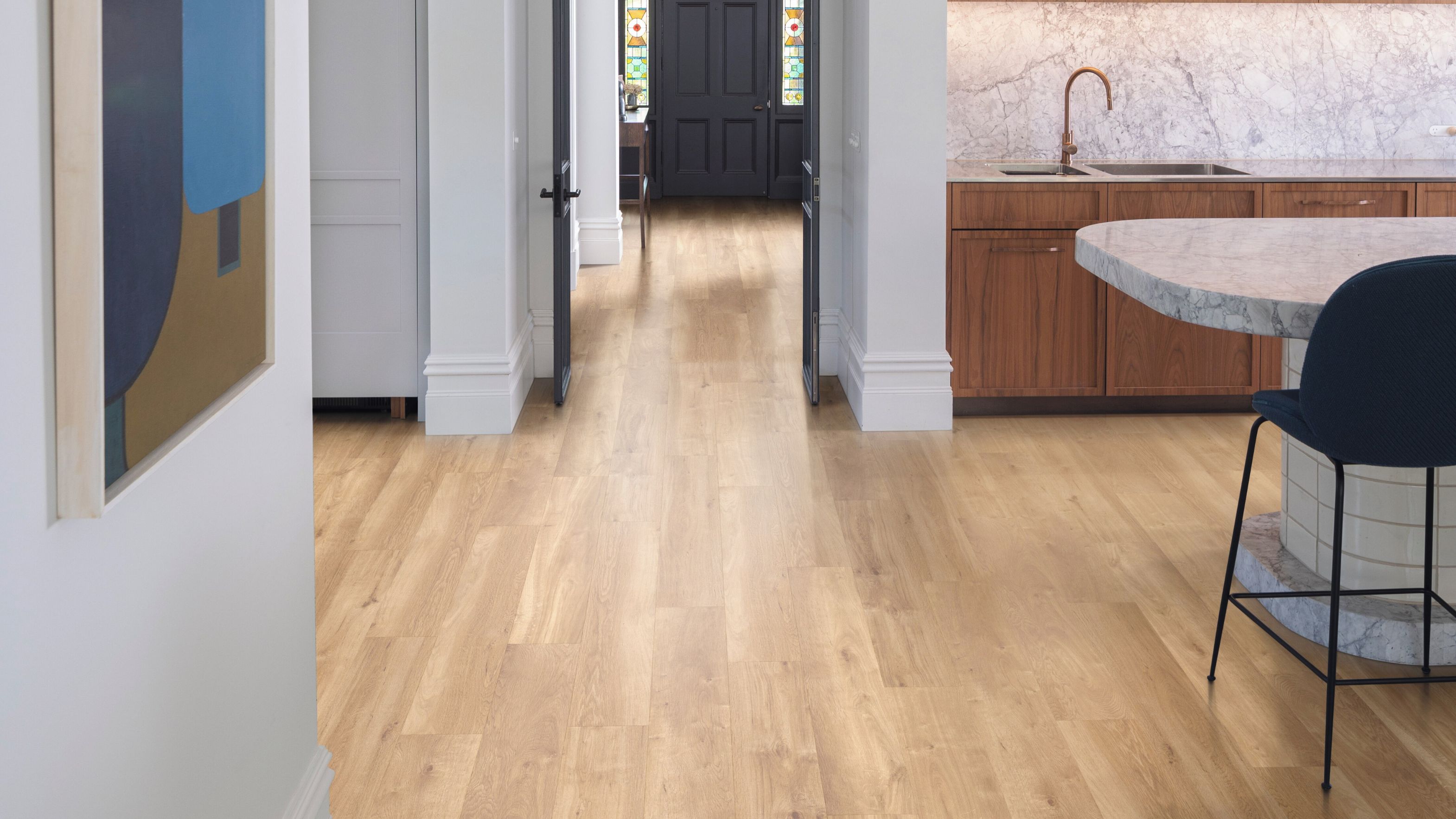 Truth: Versatility is one of vinyl flooring’s biggest advantages. Karndean’s vinyl planks and tiles can be installed in virtually any room of your home, including kitchens, living rooms, and even basements. Our waterproof and durable products are designed to handle varying conditions, meaning planks and tiles resist moisture, avoid swelling, cracking, and warping with everyday spills and splashes, providing a cohesive look throughout your entire home.