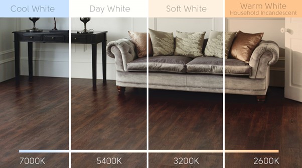 Colour temperature ranges from warm to cool and is measured on the Kelvin Scale, from 1,000 (candlelight) to 10,000 (clear blue sky). The lighting you choose within that range – combined with the tone of the flooring, paint and furnishings – will affect the ambience of your space. Warmer lighting creates a cozy, inviting mood, while cooler, crisper lighting feels vibrant and modern.
