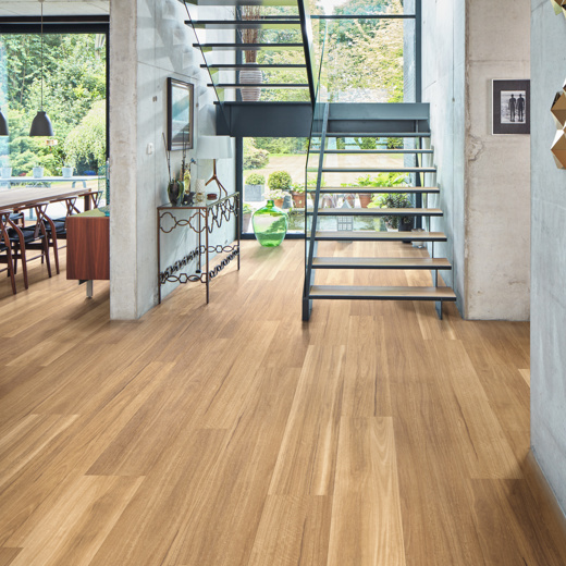 The subtle spotted appearance and large amounts of sapwood within the boards reflect the natural characteristics of this rich, Australian wood.
