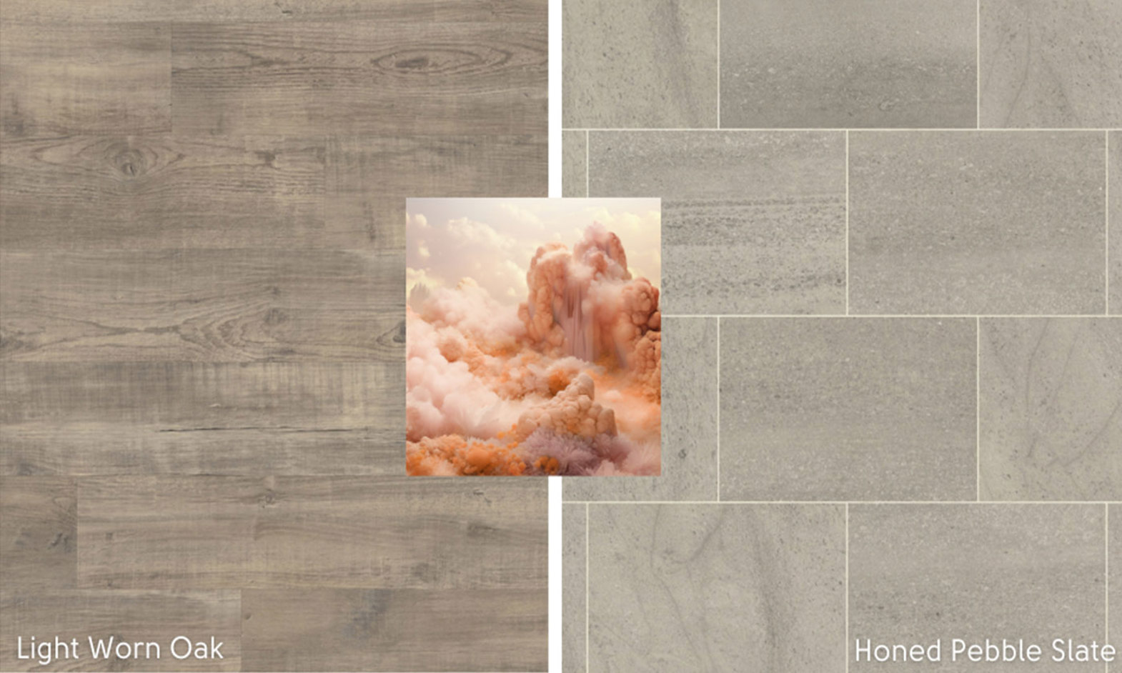 Silver Farmhouse Oak from our Van Gogh range, with its rustic patina and time worn white paint remnants, will enhance the vintage vibes of Peach Fuzz for a comfortable shabby chic feel. Or for a warmer neutral option that will reflect its pinky tones, look to Terra from our Opus range with its soft grey and beige travertine design.