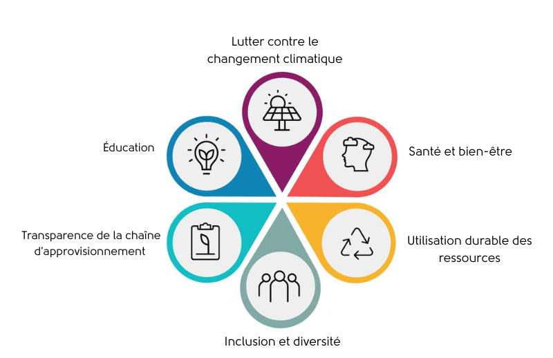 Notre démarche de développement durable s'articule autour de six piliers, tous essentiels à notre mission de création d'un avenir plus durable.